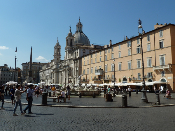 Erstes Ziel für uns war der Piazza Navono. Dort machte Inez ihr Studium klar bei einem 2. Frühstück und free WIFI.