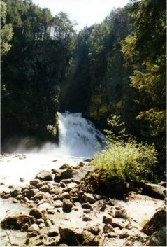 Eigentlich wollten wir das Schloß Taufers besichtigen, aber leider passiert es öfters in der Vorsaison, daß die Öffnungszeiten der Tiroler Sehenswürdigkeiten eingeschränkt sind. So standen wir nach einstündiger Fahrt in einem prächtigen Schlosshof und mußten ohne Besichtigung wieder umkehren. Daraufhin sind wir nach ca. 10 Minuten Fahrt am Parkplatz zu den Rainbachfällen angelangt, um die erste Kaskade zu bestaunen. Der Weg ist kurz und angenehm zu gehen und mit staunenden Augen haben Inez und Marc die "imposantesten Wasserfälle von ganz Südtirol" bestaunt. |